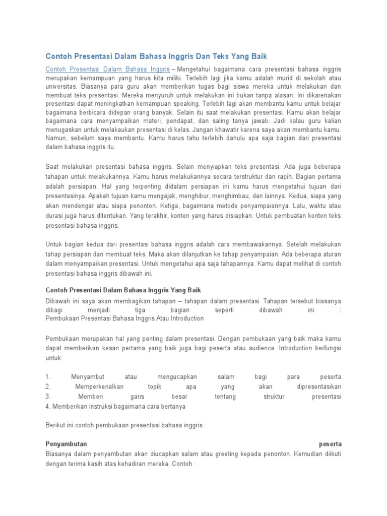 Contoh Presentasi Dalam Bahasa Inggris Dan Teks Yang Baik Bagus Pdf